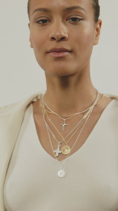 Klassikon uusi tulkinta. Hopeinen Aurinkoleijona-amuletti ilahduttaa kaikkia pienten, keveiden korujen ystäviä, joita puhuttelevat kiehtovat yksityiskohdat, vahvat tarinat ja kaukaa menneisyydestä kumpuavat uskomukset. Käytä pitkänä, lyhyenä tai jotain siltä väliltä, kenties kahta tai kolmea Amuletti-riipusta samanaikaisesti. Helan halkaisija 20 mm. Taustapuoli keskeltä aavistuksen kovera. Ankkuriketjussa säädettävä pituus 40/45/50 cm ja ketjun paksuus on 2mm. Korun mukana toimitetaan myös jatkopala, jolla ketjusta voi tehdä 55- tai 60-senttisen. Ketjussa ja jatkopalassa jousirengaslukko. Riipus on saatavilla myös pronssisena.