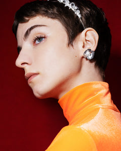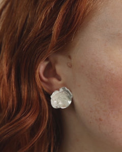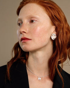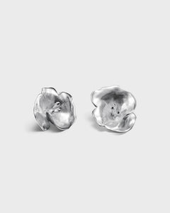 Juhannusruusujen herkkä kauneus puhkeaa kukkaan veistoksellisissa Kesäyön ruusu -hopeakorvakoruissa.
