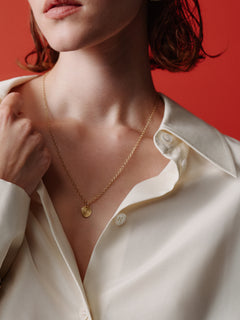 Pieni Kosmos-riipus on valmistettu kullanhohtoisesta kirkkaasta pronssista. Riipus on kuvioitu molemmin puolin. Ankkuriketjussa säädettävä pituus 42/45/50 cm, jousirengaslukko.