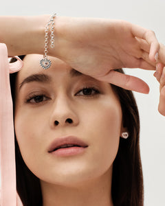 Roosa nauha 2025 -korut, hopeinen Valoisa-sydänriipus, -rannekoru ja -korvakorut, ovat saatavissa rajoitetun ajan. Korut valmistetaan käsityönä täysin kierrätetystä hopeasta Kalevala Korun omalla tehtaalla Helsingissä.