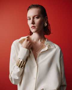 Vetovoima-rannekorussa on arkkitehtoonista jylhyyttä ja näyttävyyttä, mutta samalla se aaltoilee kepeästi kuin tuulessa hulmuava silkki. Vetovoima-korujen suunnittelun lähtökohtana on ollut oivaltava muotoilu, leikkimielisyys ja yhdisteltävyys. Voit yhdistää rannekorun toiseen Vetovoima-rannekoruun – kapeaan tai leveään, hopeiseen tai pronssiseen - vieläkin näyttävämmäksi kokonaisuudeksi. Rannekorusta on saatavissa kolme halkaisijakokoa, koko ei ole säädettävissä (5,7= 17,5 cm / 6,0=18,5 cm / 6,3=19,5 cm). Yhdistele ja leikittele ennakkoluulottomasti.