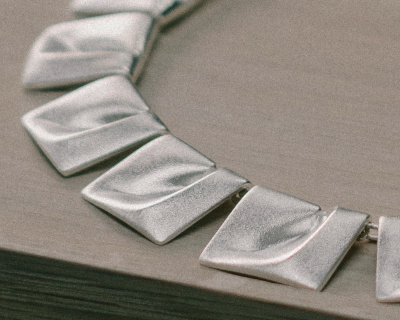 The designer was troubled by the interruption of his design work for the film. After seeing the movie, Weckström returned to his original sketches and further developed his ideas. This led to the completion of the design for the Poema necklace, which was produced in limited quantities in the 1990s.
