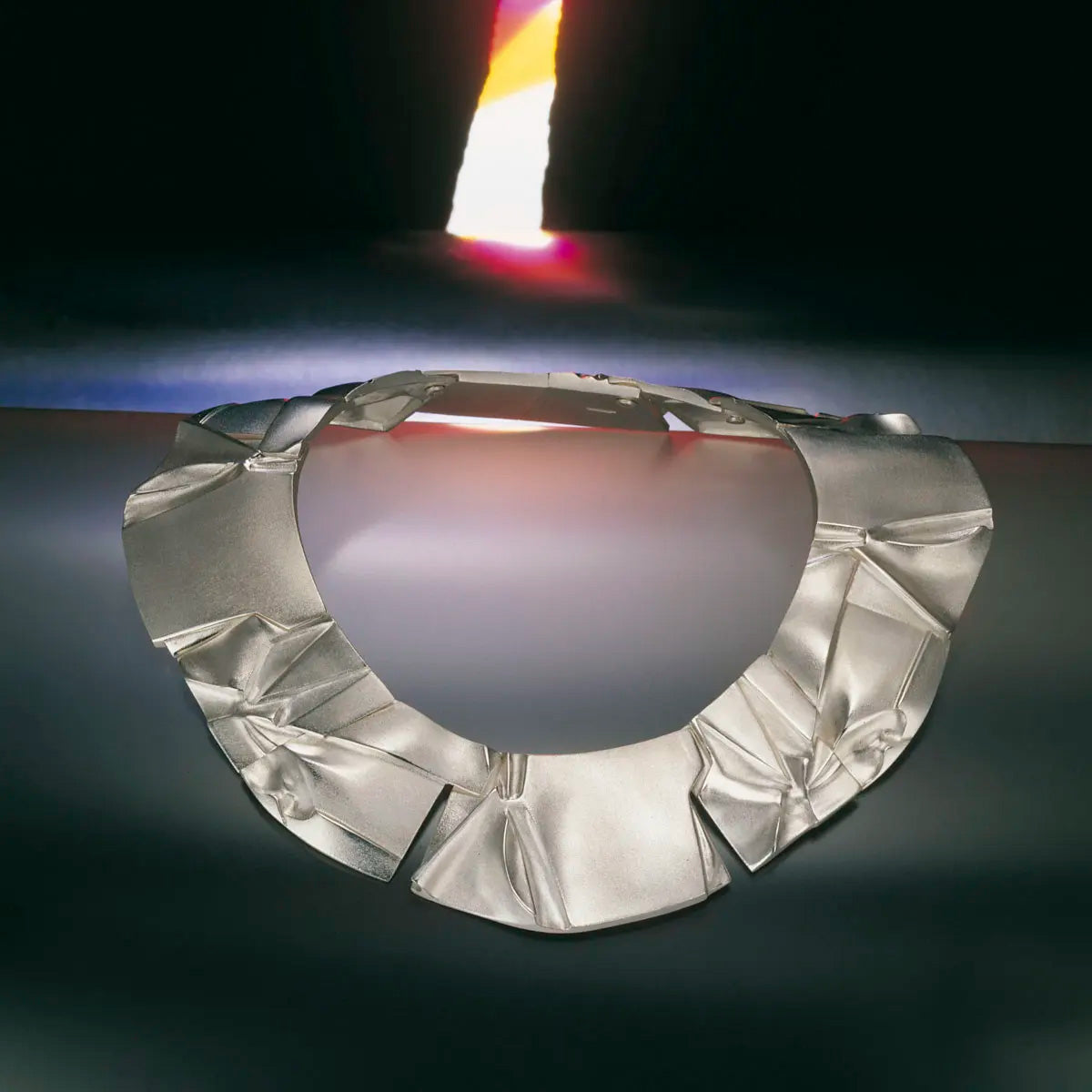 The Planetoid Valleys necklace and Darina's bracelet are the most iconic pieces designed by Björn Weckström. "Space didn't just mean outer space to me; it also represented a person's inner space," Weckström reflects on his inspiration. Explore the other sculptural pieces featured in the Space Silver series.