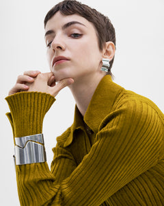 Riot of fashion and design! This bracelet is almost colossal in its architectural impressiveness, yet its smooth surface waves as lightly as silk moved by a gentle breeze. The Alluring series is all about playfulness, inventiveness and mix-and-match. Try combining the bracelet with another Alluring bracelet – wide or narrow, silver or bronze – to make an even more astonishing impression! This bracelet is available in three different sizes, the size of an individual bracelet is not adjustable (5,7= 17,5 cm / 6,0=18,5 cm / 6,3=19,5 cm).
