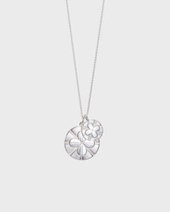 The Four-leaf Clover pendant is an excellent choice as a confirmation or Prometheus gift—or simply as a delightful token for anyone setting out on life’s paths. The diameter of the round Four-leaf Clover Amulet pendant is 20 mm. The reverse side is hollow (with the design in negative) and the piece is therefore not suitable for engraving. The thin anchor chain has an adjustable length of 40/45/50 cm. The pendant is delivered with a separate extension piece you can use to make the chain even longer, 55 or 60 cm. Spring ring clasp on both the chain and the extension. Also available in bronze.