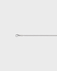 Silver curb chain that you can turn into a unique pendant by adding Itu charms. The curb chain is made up of tightly interlinked flat links. The chain is 2.4 mm wide and 1.4 mm thick. Adjustable length 50/55/60 cm, lobster clasp.
