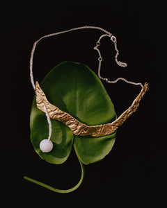 Martin Bergström drew inspiration for the glass bead in the Itu jewelry collection from the moonlight illuminating the sky. The large glass bead in the Itu necklace (16 mm in diameter) is handcrafted by glass artist Nina Diaz-Halonen in her studio in Helsinki. The bead is made from world-renowned Italian Murano glass.