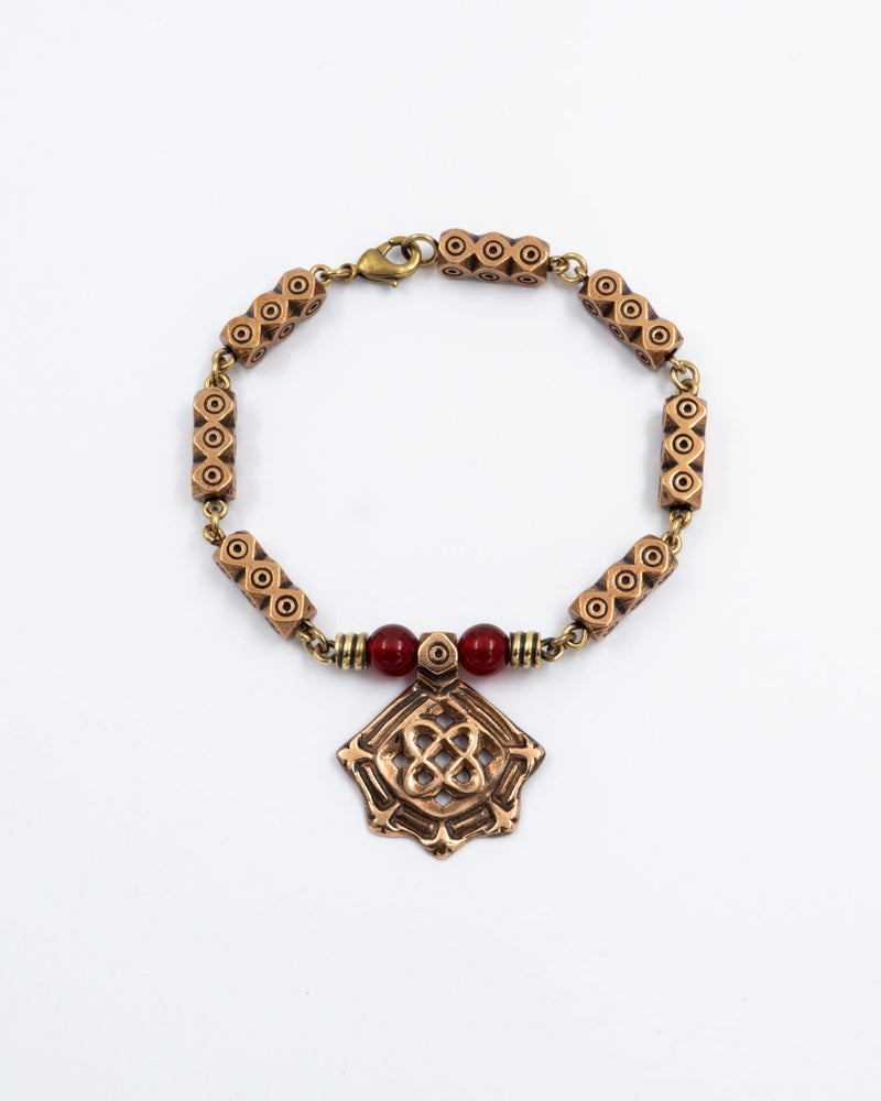 Pidetty Kanteletar-rannekoru pronssi karneoli 20,5 cm