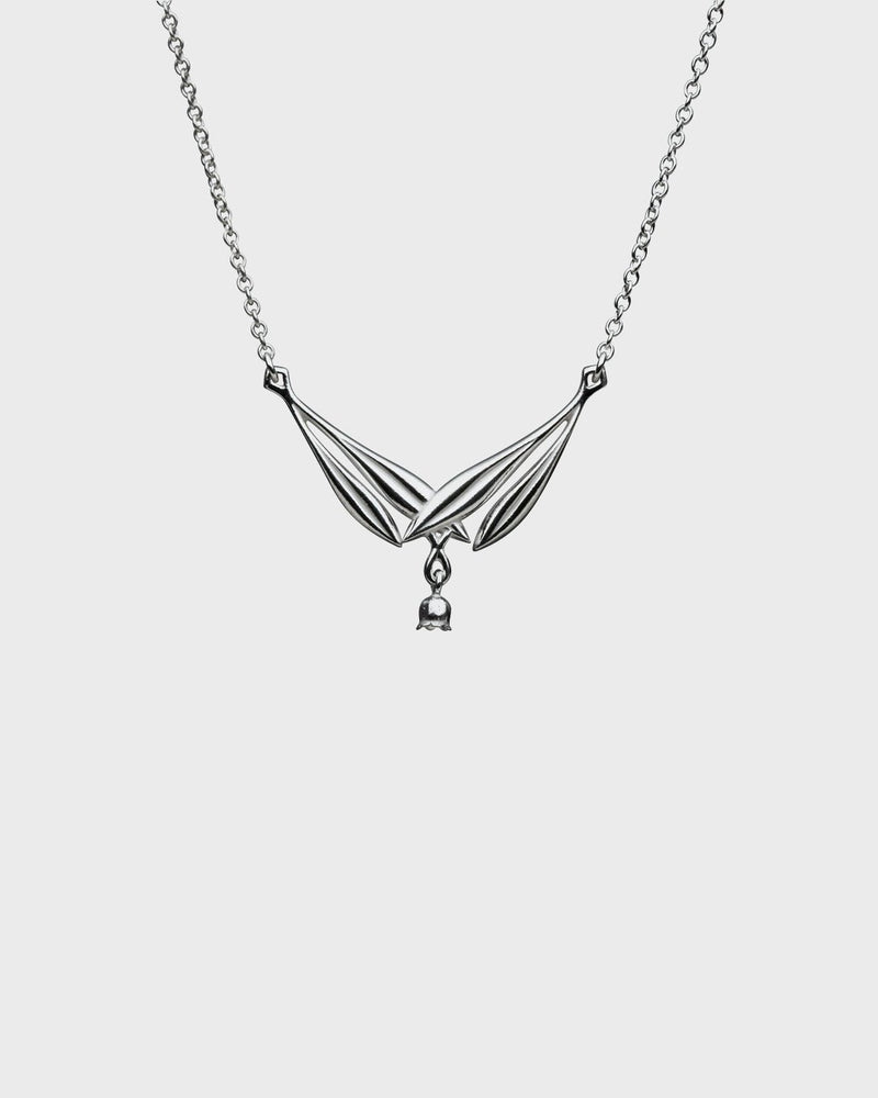 The silver necklace features a small flower chain that repeats the shape of the small bell flowers of our national flower. Adjustable length 45/42 cm. Also available in bronze.