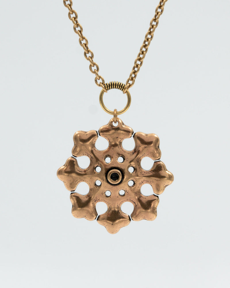 Muodoltaan lumihiutaletta muistuttavan pronssiriipuksen viikinkiaikainen esikuva on löydetty Nousiaisten Myllymäestä. Kalevala Korun mallistoon korun on suunnitellut taiteilija Germund Paaer 1940-luvulla. Ankkuriketju 70 cm, ei lukkoa. Riipuksen leveys 48 mm.