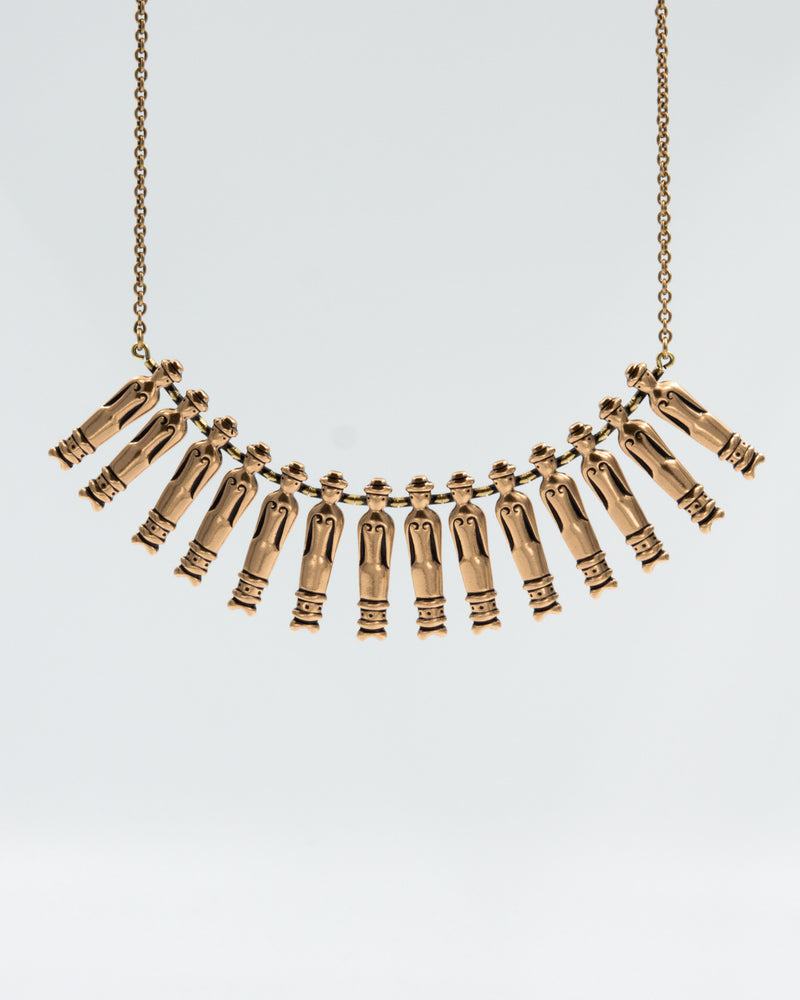 In 1947, Kalevala Koru celebrated its ten-year anniversary by organizing a jewelry design competition. Until then, the company had made replicas and replicas of ancient jewelry designed by the artist Germund Paaer, but now they also wanted to bring modern Finnish jewelry design to the collection. In the words of Elsa Heporauta: "He who copies the old must also create the new." One of the awarded works in the design competition was the Doll by the young Kirsti Ilvessalo (1920–2019). Ilvessalo had got the idea for the hat-headed human figures of the necklace from the poor. Nukekäädy became a Kalevala jewelry classic, which was produced until the 2010s. The necklace was complemented by gently swinging Doll earrings .
